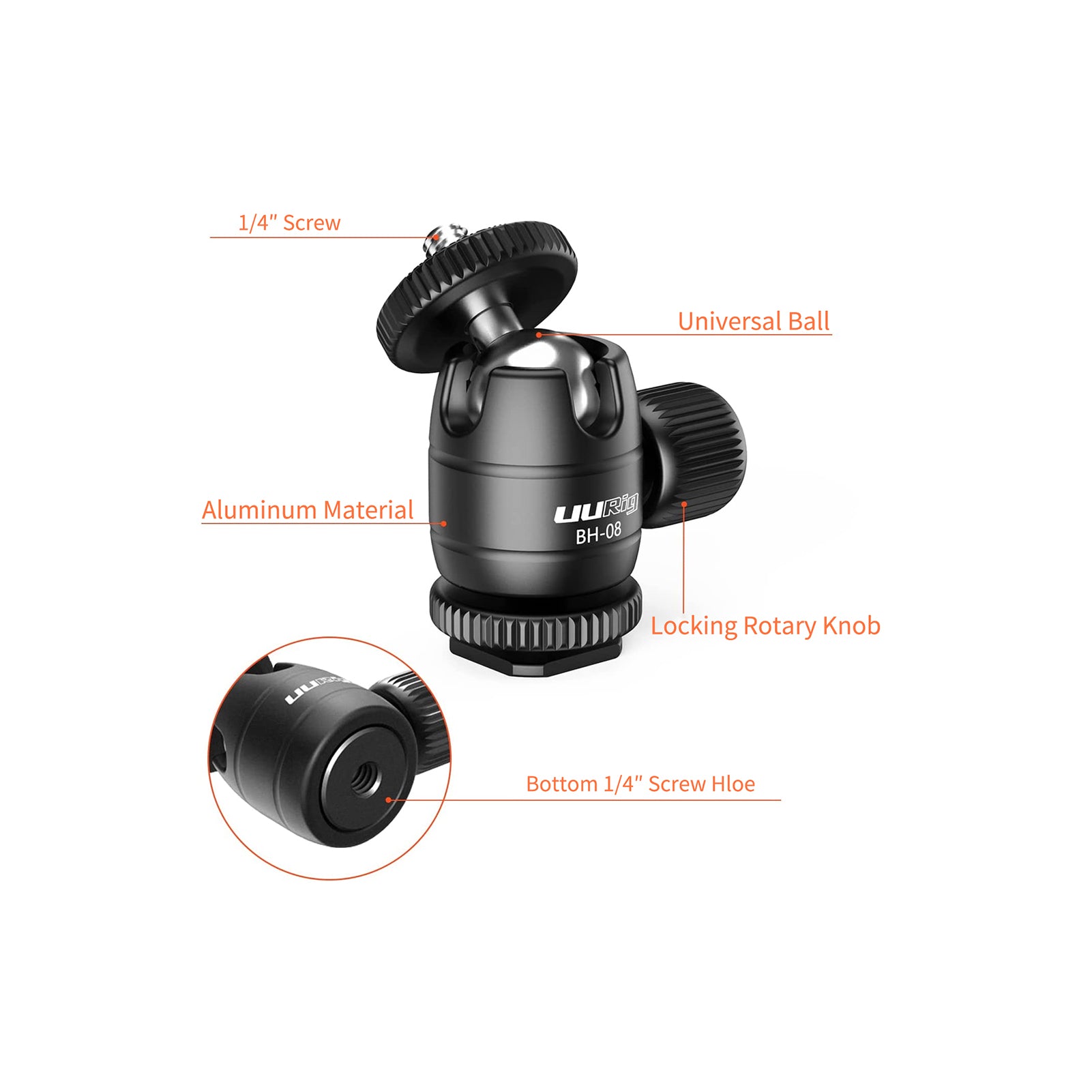 UURIG BH-13 3 way metal ballhead with cold shoe