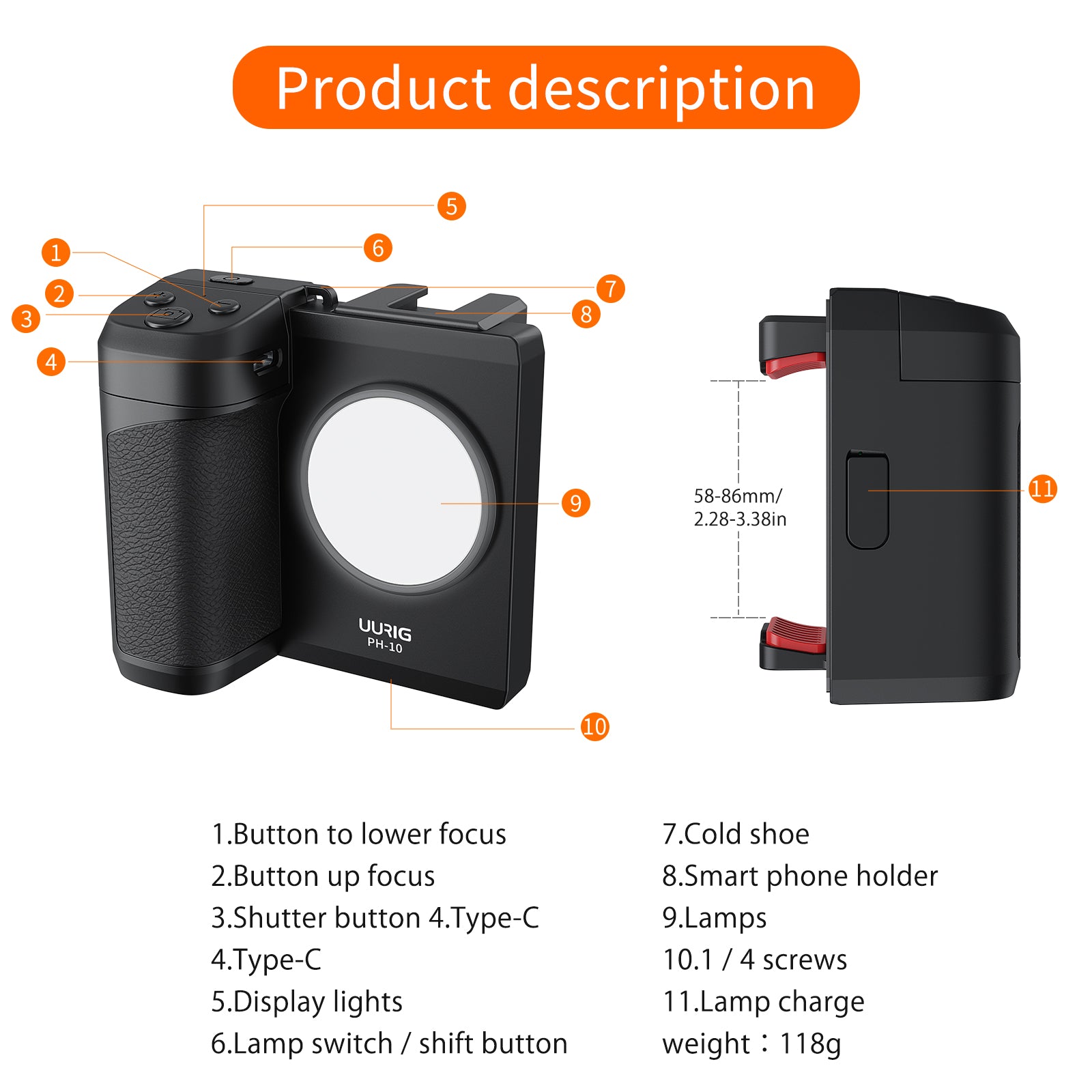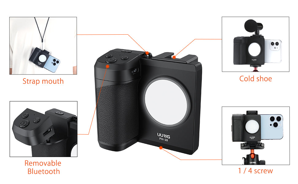 UURIG PH-10 Smartphone Camera Shutter Remote Handle Grip with LED light