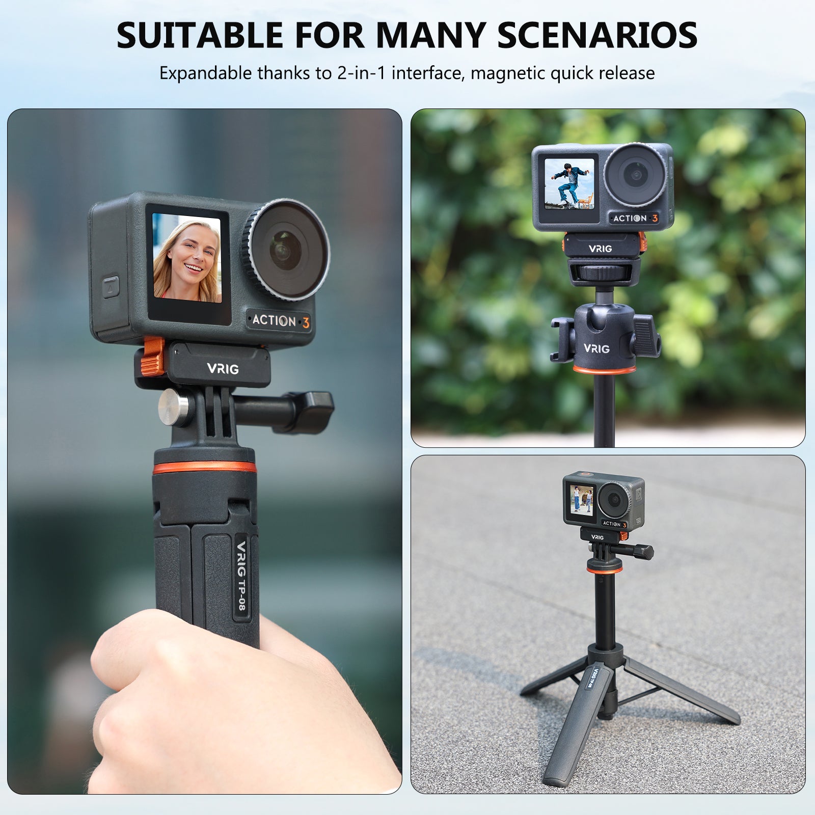 VRIG AC-33 Magnetic Quick Release Adapter Mount Base for DJI Osmo Action 5 Pro / 4/3 / Osmo 360,