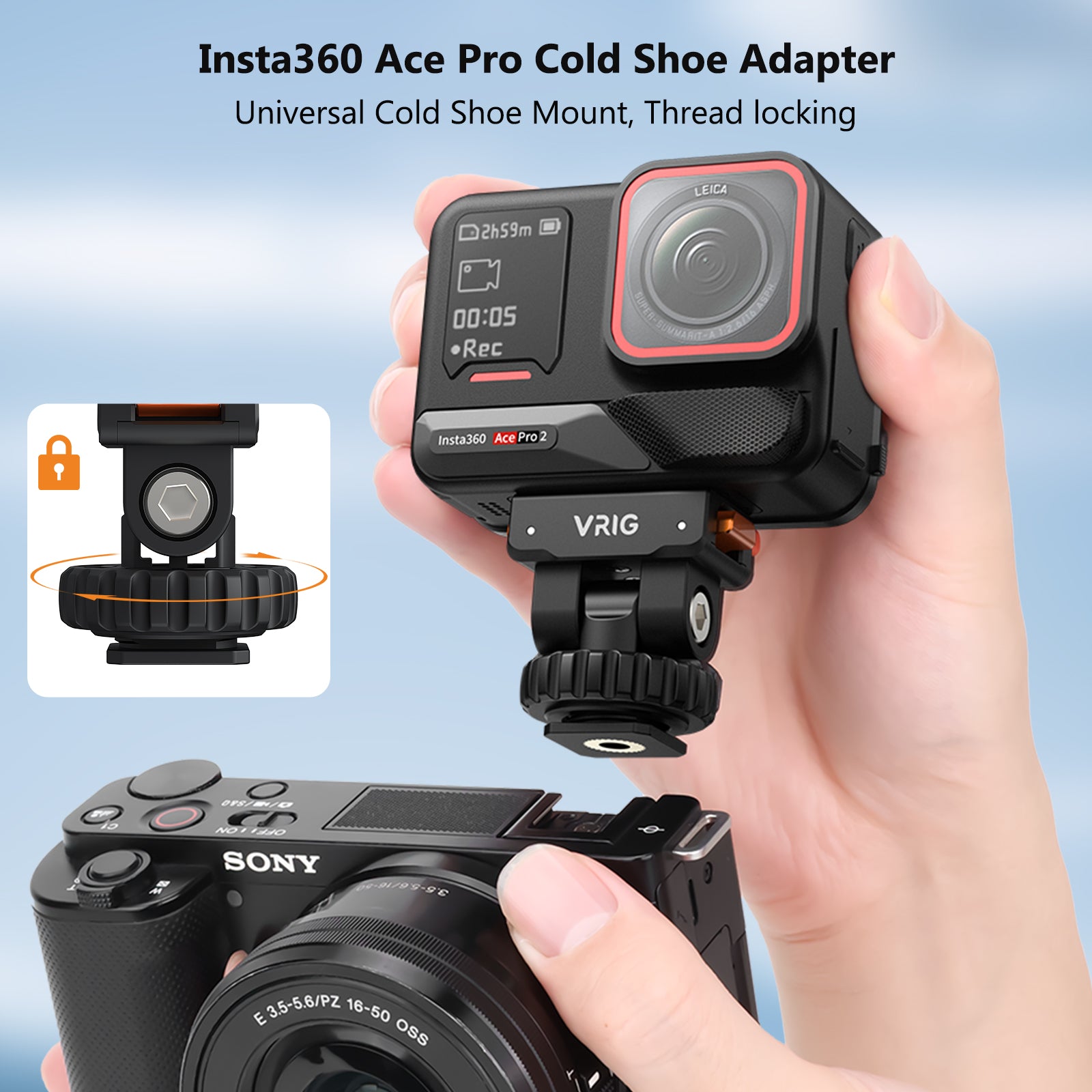 VRIG AC-44 Cold Shoe Adapter with Magnetic Quick Mount for Insta 360 Ace/Ace Pro 2