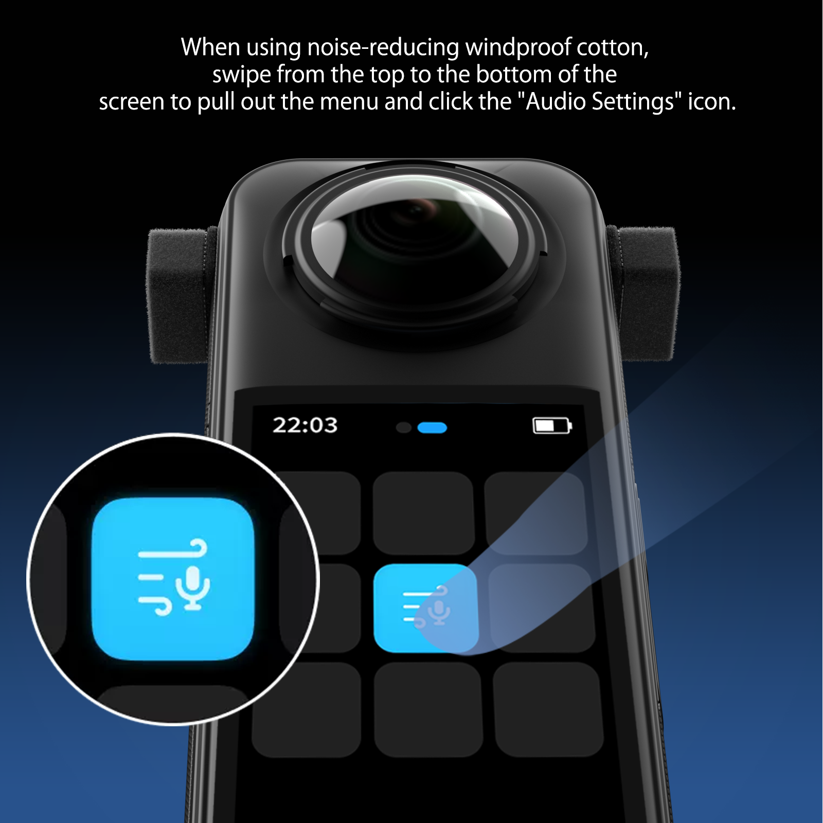 - [Note!!!] - Before using Insta360 X5 with this product, swipe down on the camera's touchscreen to bring up the shortcut menu, and select "Motion Windshield" in the audio settings to enjoy clearer sound