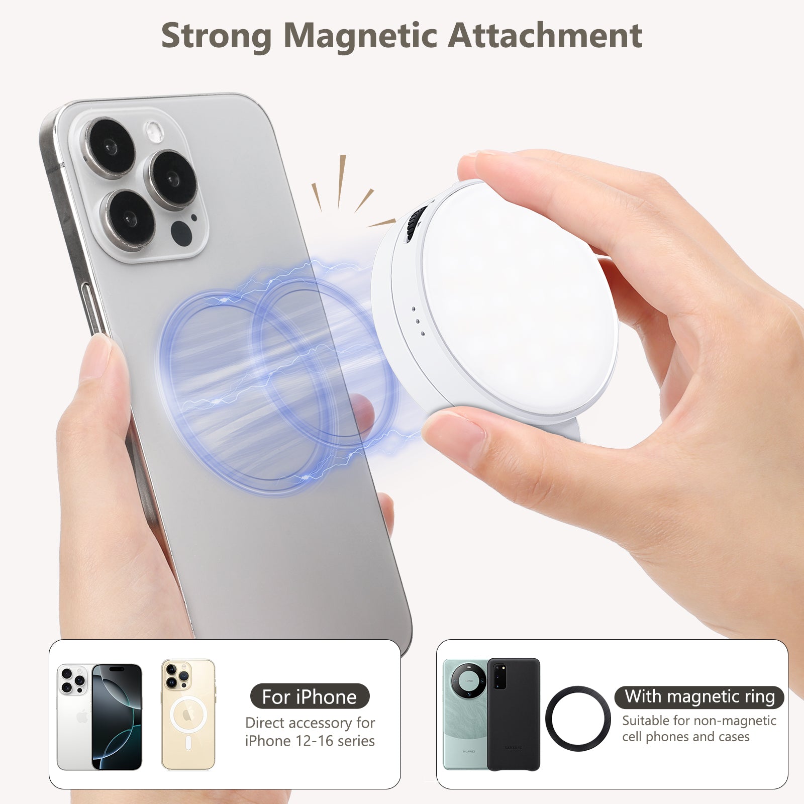 - [Instant Magnetic Connection]: The magnetic module has a built-in strong magnet for easy attachment and removal. Compatible with iPhone 16 15 14 13 12 full series and mag safe cases. Other smartphones can be paired with the magnetic metal ring, so as to realize the magnetic quick-attachment and quick-release