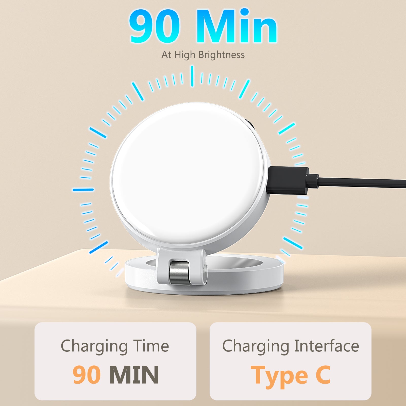 - [Built-in Long Life Battery]: The LED selfie light is powered by a 400mAh rechargeable battery that can be used continuously for up to 90 minutes at maximum power. Equipped with a USB Type-C charging cable with 5V/1A input, it can be fully charged in 90 minutes