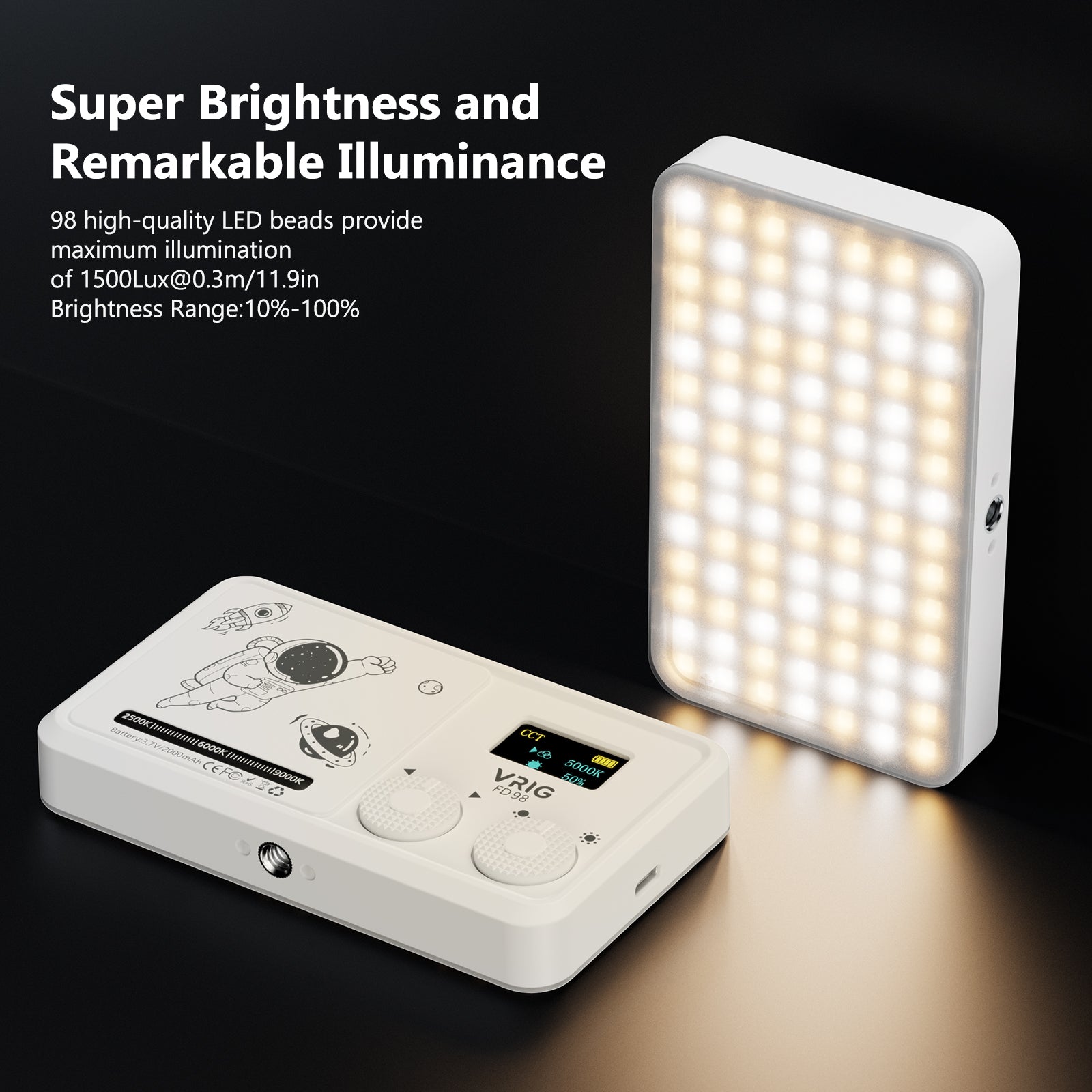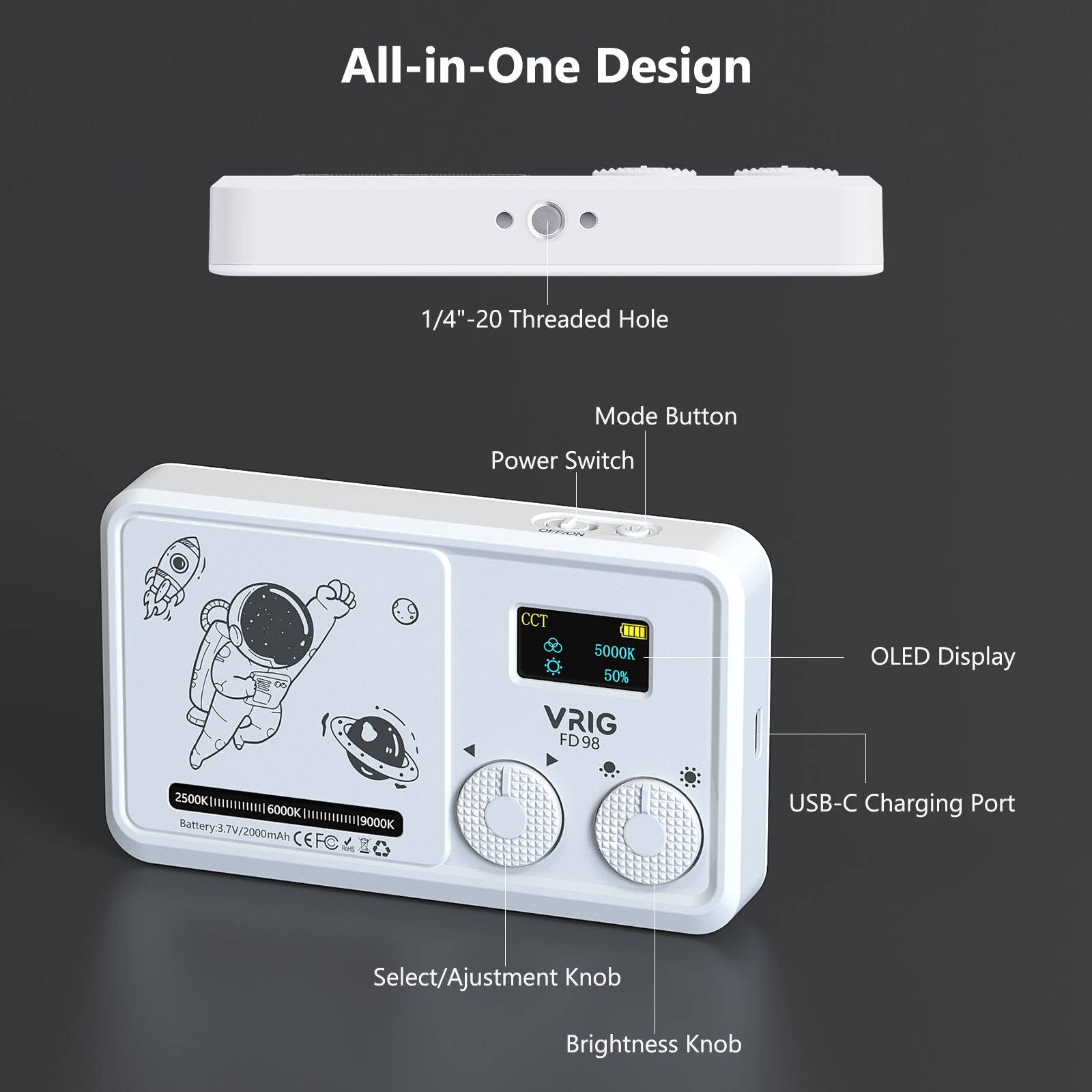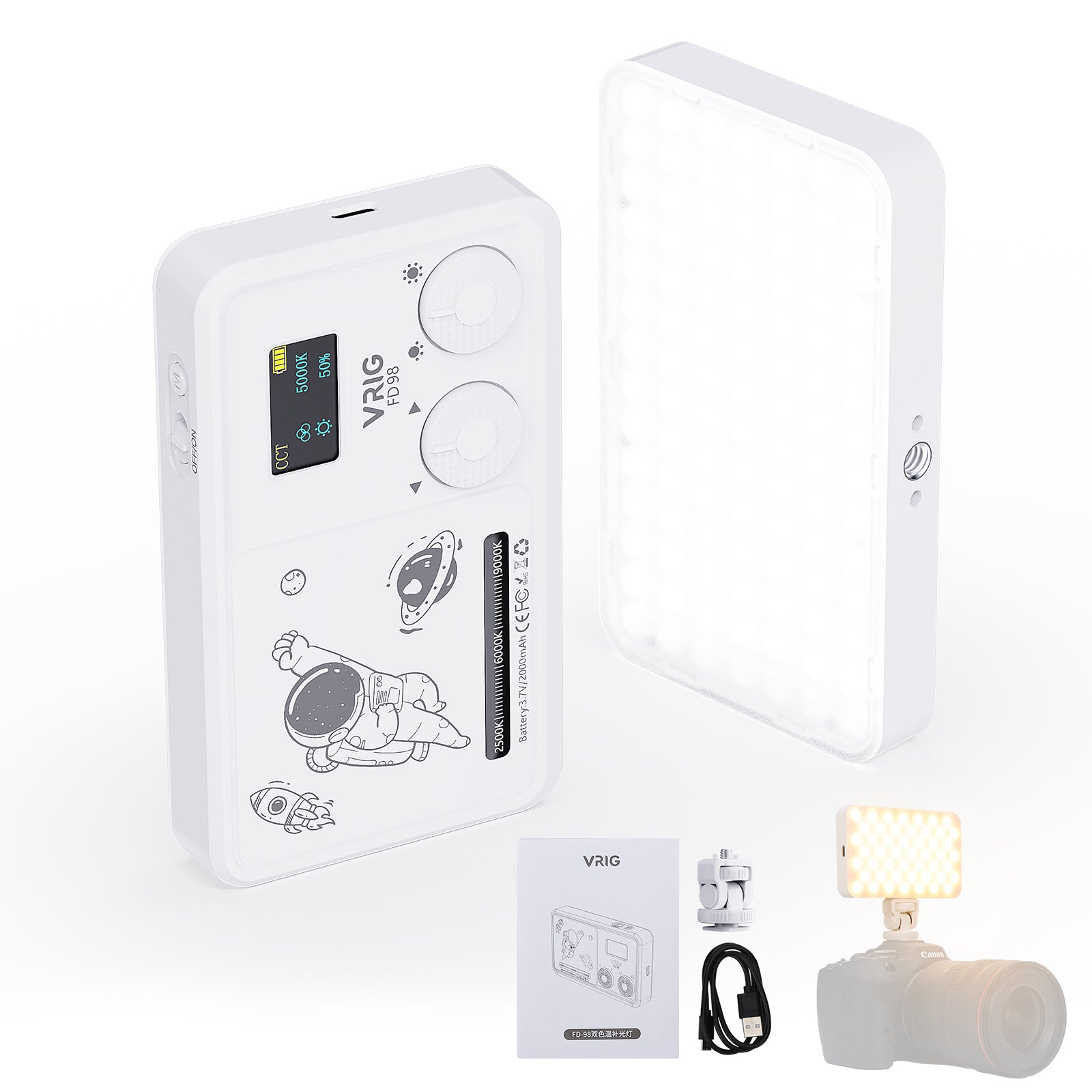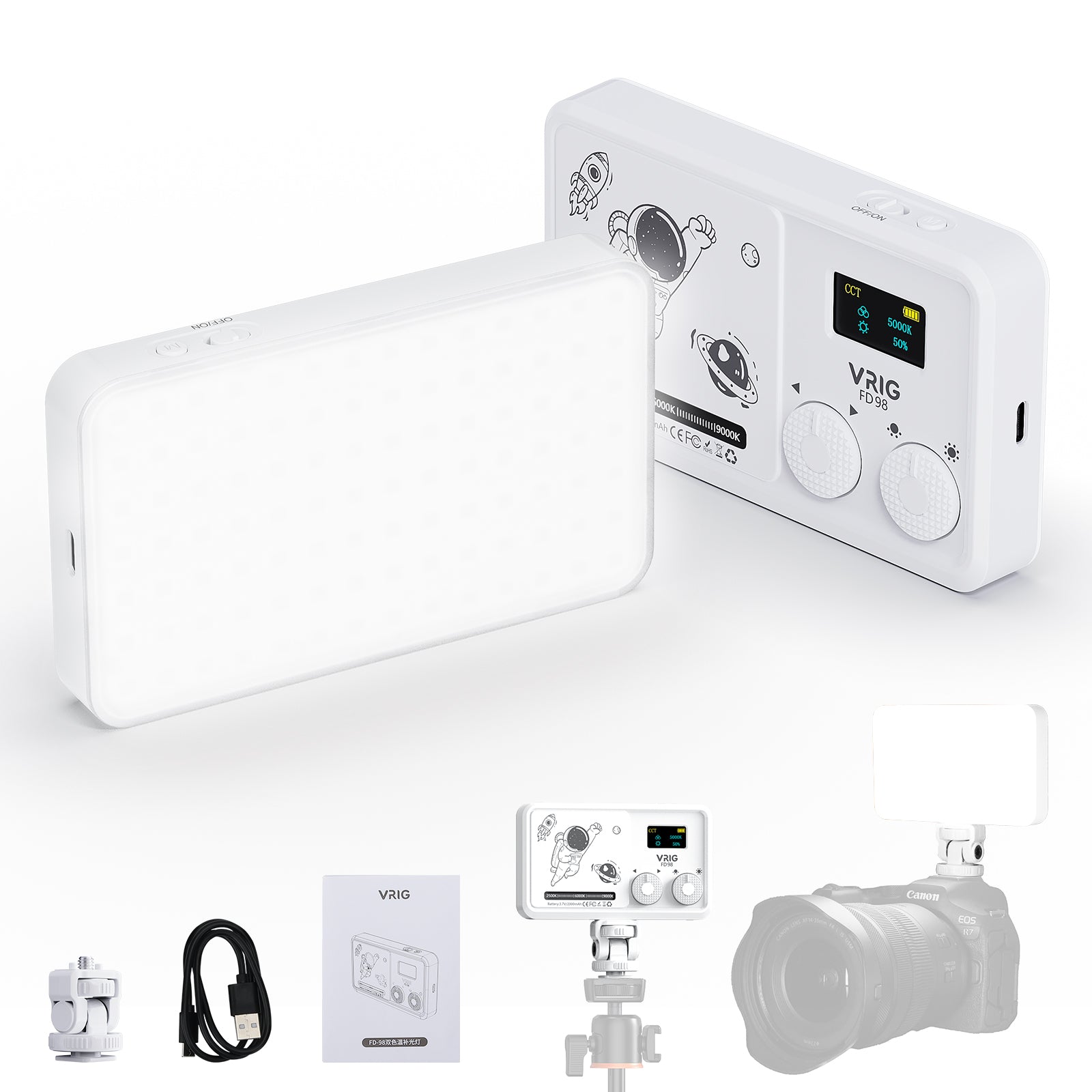 VRIG FD-98 LED on Camera Video Light Portable Camera Lights, 20 Light Scenes,98 LED Beads for Photography Video Lighting, Rechargeable 2000mAh CRI 95+ 2500-9000K w Cold Shoe