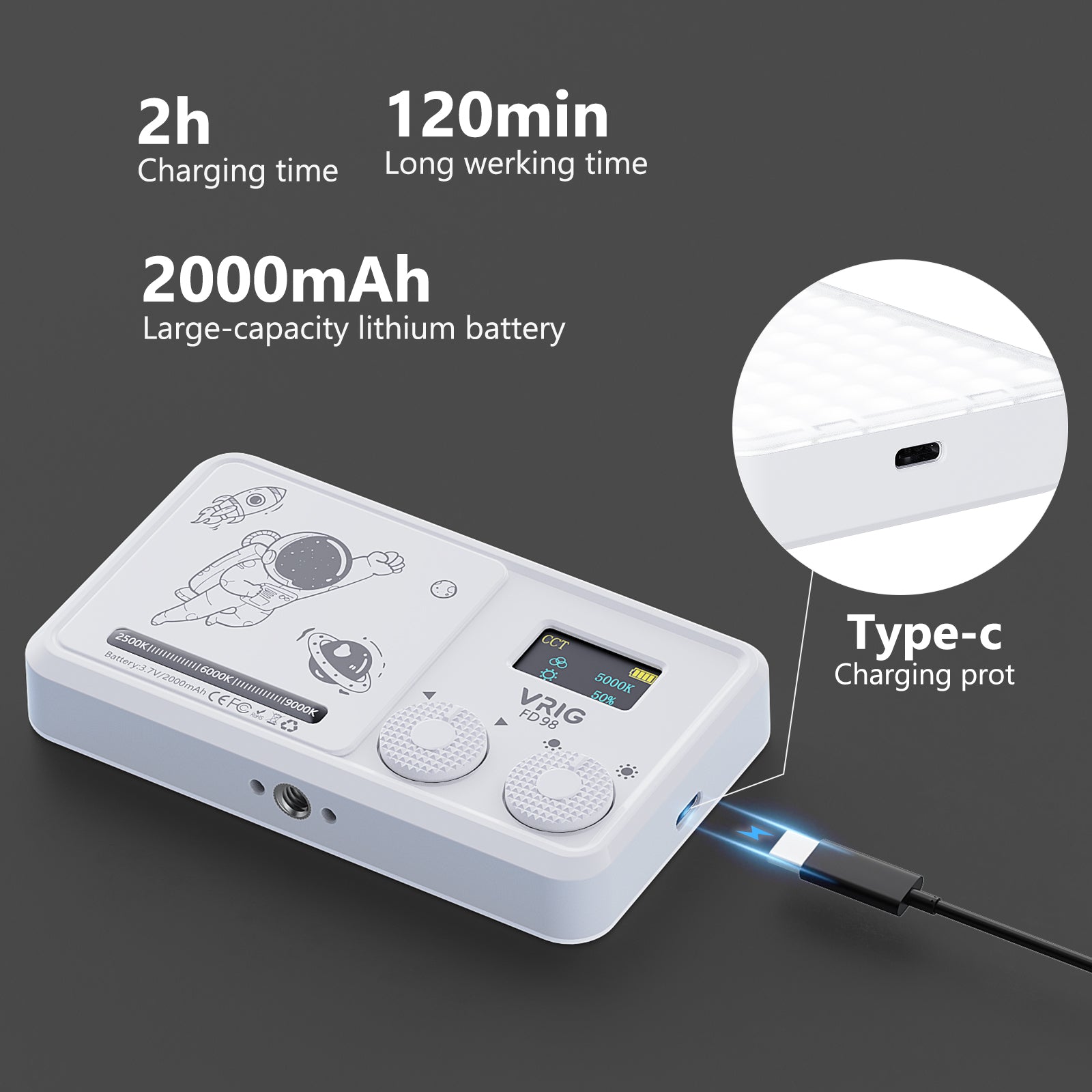 - Long-Lasting Rechargeable Battery: The built-in 2000mAh rechargeable lithium battery can be fully charged in about 2.5 hours, providing up to 2 hours of maximum brightness or an impressive 25.5 hours on the minimum setting. The Type-C charging port allows for seamless use even while charging.