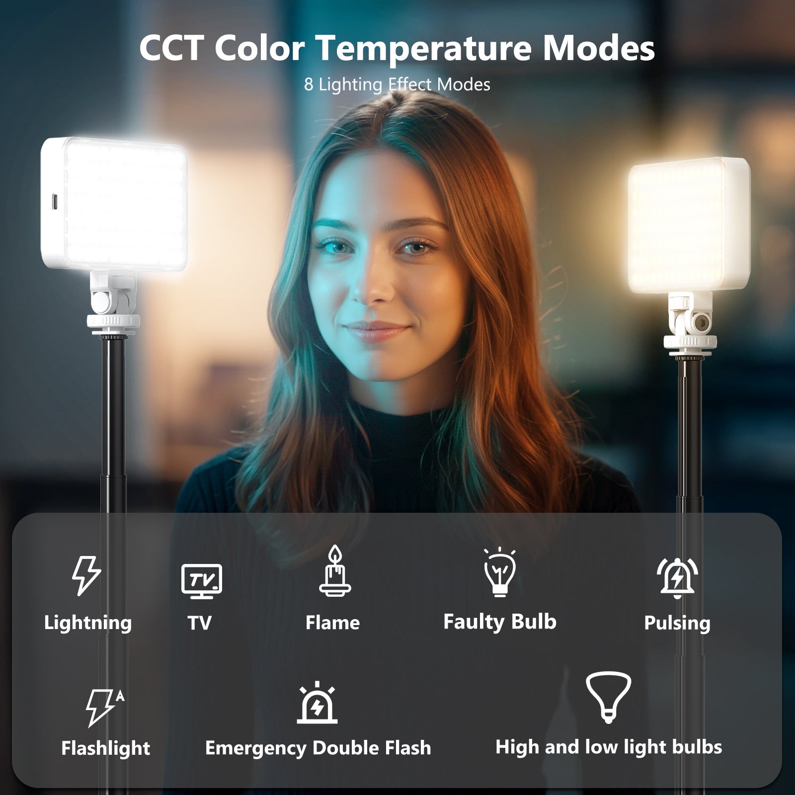 - Creative Special Effects: Enhance your video projects with multiple creative eight lighting modes, including 1. Lightning 2. TV 3. Candlelight 4. Broken bulb 5. Pulse flash 6. Strobe 7. Emergency double flash 8. High and low light bulbs. The versatility of the LED on Camera Video Light allows you to switch between different effects to elevate your storytelling easily.