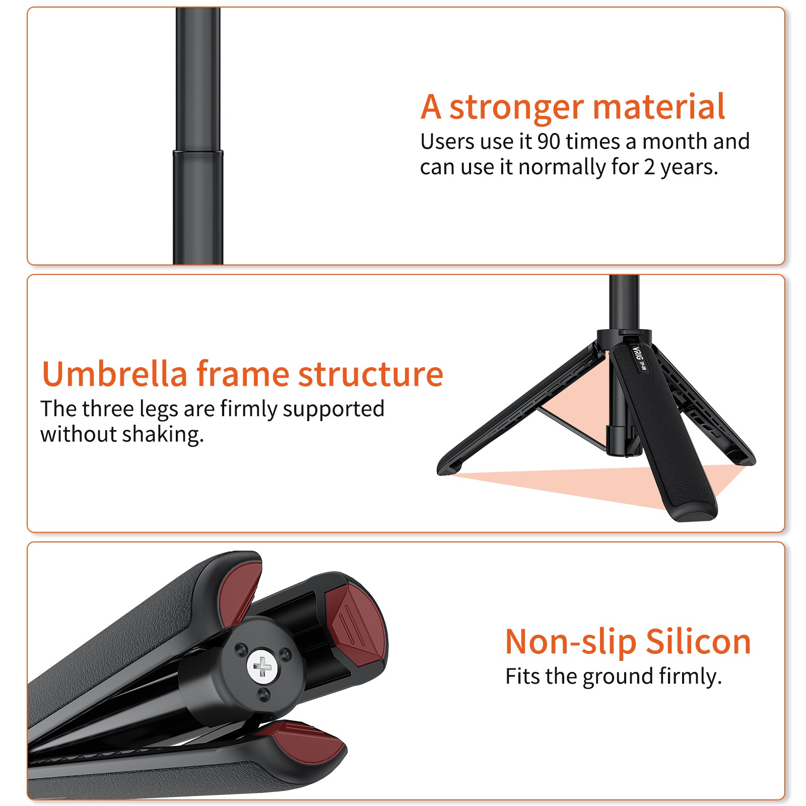 - 🛒Updated version:Durable and not shaking,there is a rubber base at the bottom of the tripod to protect and stabilize the tripod. In addition, there are fixed bars connecting the tripods, which greatly enhances the stability of the tripod. The handle has a non-slip texture for better hand feel.Waterproof, supports underwater use.